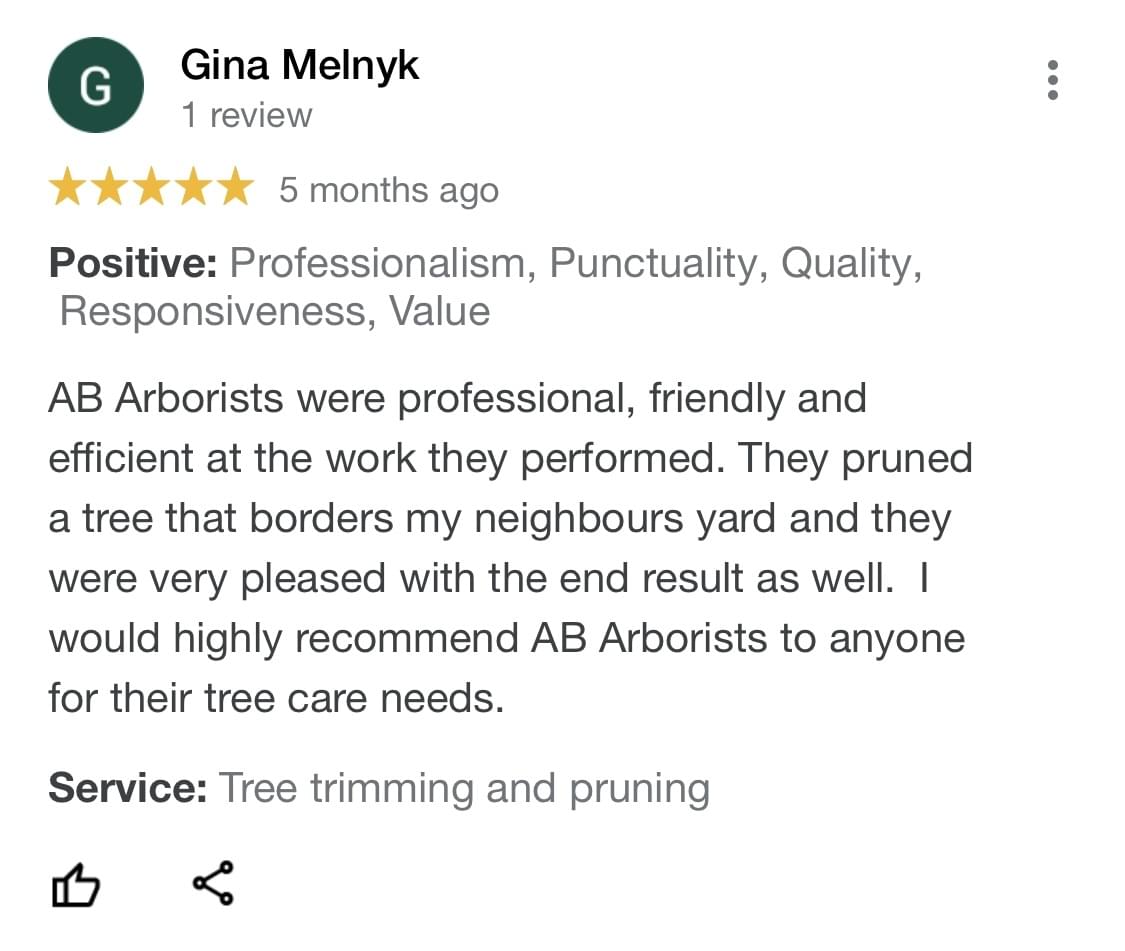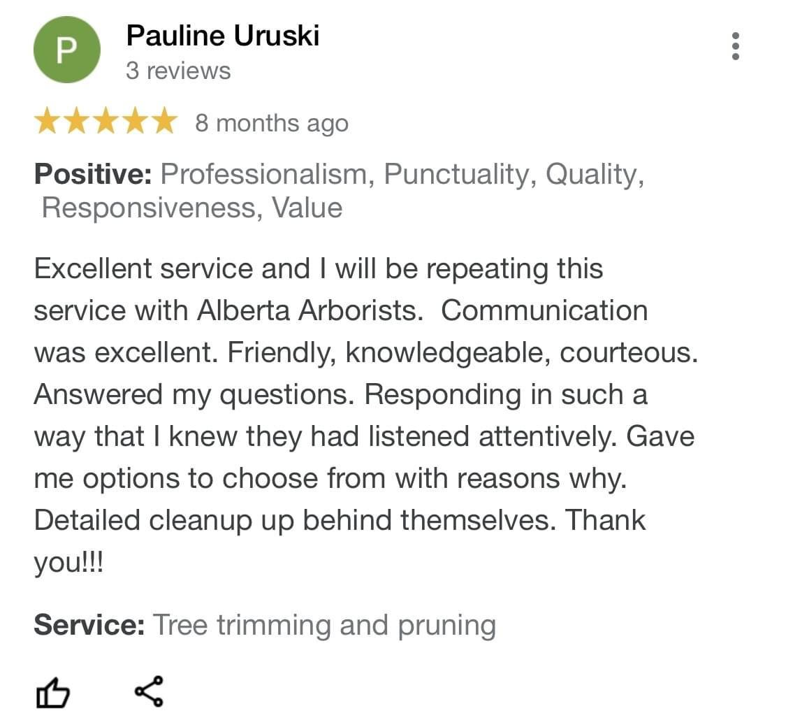 "When it comes to our backyard, we demand the best. We have found Alberta Arborist's service to be unmatched. We I recommend them to everyone who needs tree services."